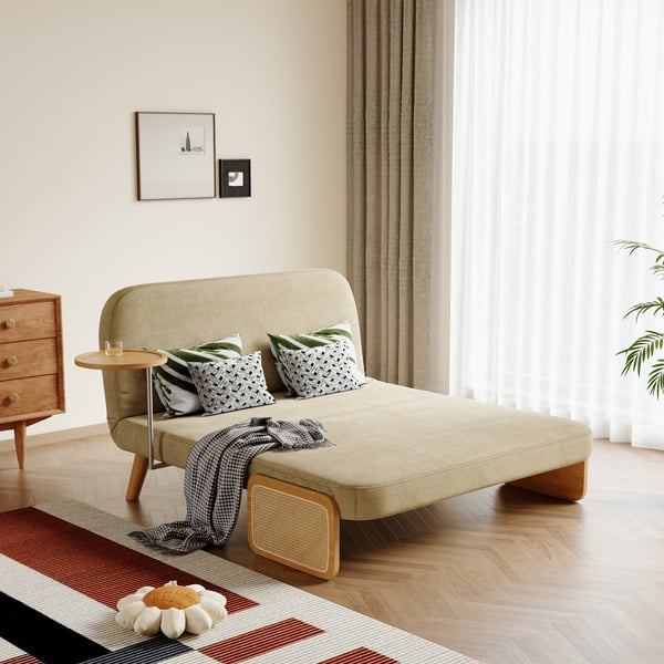 Canapé-lit convertible 2 places en coton et lin avec tablette pivotante - avoine
