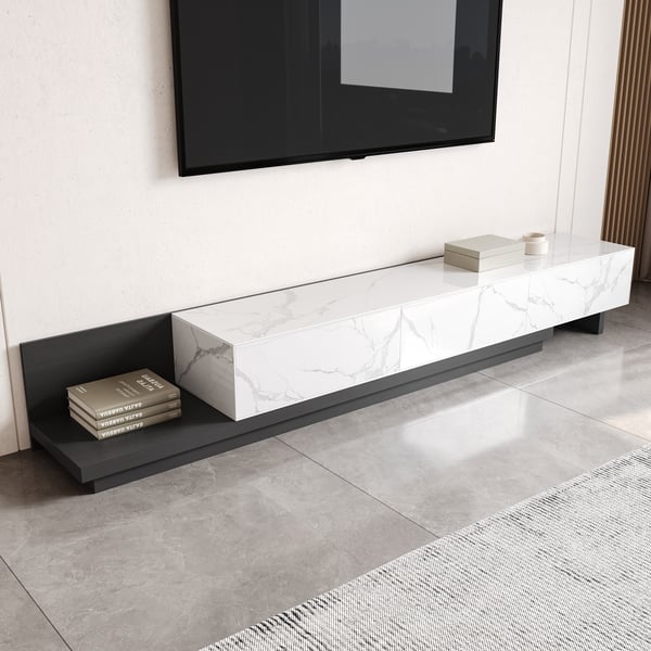 Armário de TV extensível Quoint com 3 gavetas de 179 cm a 255 cm em preto e branco